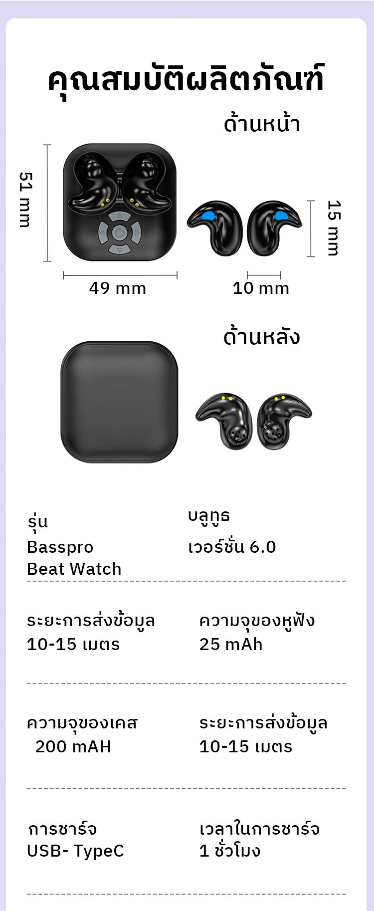 Basspro Beat Watch หูฟัง ใส่นอนได้ มีที่บังคับ