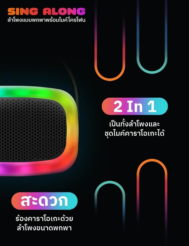 ลำโพง Sing Along มาพร้อมกับไมค์ สามารถร้องเพลง คาราโอเกะได้ หรือจะใช้เปิดเพลงฟังปรกติ ก็ได้